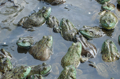 Despite the fact that the entire country was saturated in blood - Pharaoh continued to ignore God’s demand for the release of His people for the purpose of emancipation, reconciliation, and glorious worship. Then we read in Exodus 8:6, “So Aaron stretched out his hand over the waters of Egypt, and the frogs came up and covered the land.” From the nasty blood-muck Nile, which was Egypt’s lifeblood of fertility, emerged an host of hemoglobin and plasma coated croakers. Frogs were making their way into homes, kitchen counters, bedrooms, ovens, pantries… and we read, “But the magicians did the same things by their secret arts; they also made frogs come up on the land of Egypt.”